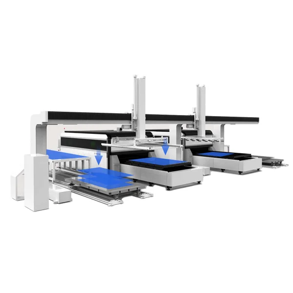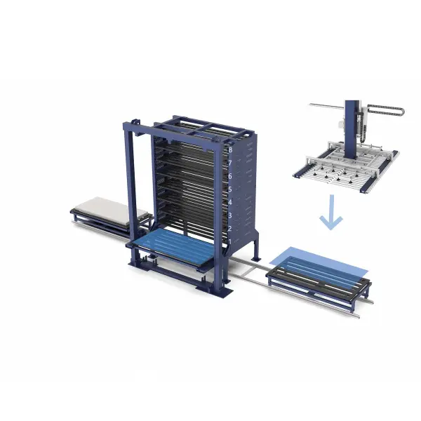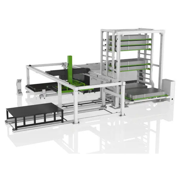 Системы автоматизации позволяют превратить обычный станок лазерной обработки в современный автоматизированный комплекс в котором происходит учет израсходованного материала и материала, пригодного для дальнейшей обработки. Единая система позволяет убирать обработанные изделия и загружать новые листы в соответствии с заложенной программой без участия оператора. Башенная система хранения экономит пространство и позволяет станку работать без простоя