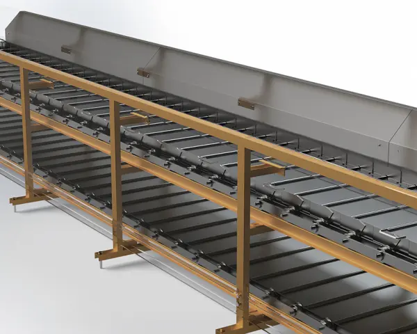 Магнитный барабан с диаметром 380 мм может быть установлен на двигателе конвейера для образования магнитного сепаратора с конвейером. Когда железосодержащий материал попадает в магнитное поле с силой 16000 Гс, он притягивается магнитным роликом. Для того чтобы отделить примеси от барабана, нужно соскоблить железо скребком.