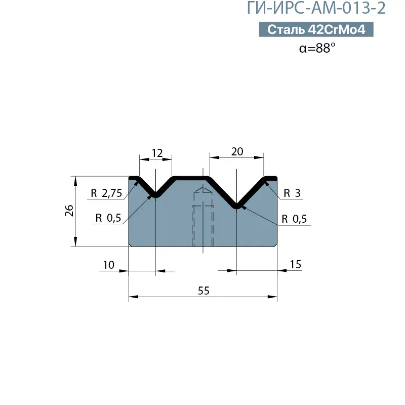 Мы рады представить вам матрицу ГИ-ИРС-АМ-013-2 (Матрица с двумя ручьями) системы крепления EUROPEAN STYLE/AMADA/PROMECAM, которая является ключевым элементом листогибочного оборудования и предназначена для создания сложных профилей в металле.