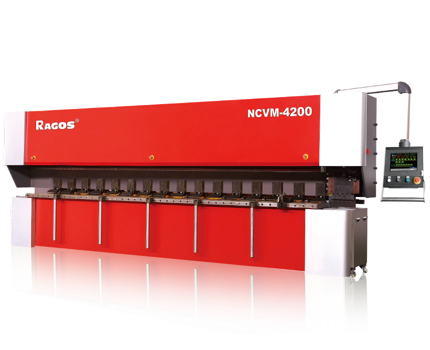 Станок для нарезания V-образных канавок NCVM-5200 позволяет прорезать канавку по всей длине заготовки. В месте выреза уменьшается толщина металла, что позволяет создавать очень маленький внешний радиус изгиба при гибке. Резка осуществляется четырьмя режущими инструментами для равномерного распределения усилий, что снижает деформацию обрабатываемой детали. Для обеспечения жесткого зажима заготовки предусмотрены гидравлические зажимы. На станок возможна загрузка листа с шириной до 1600 мм и длиной до 3200 мм. Скорость перемещения по оси Х достигает 110 м/мин.