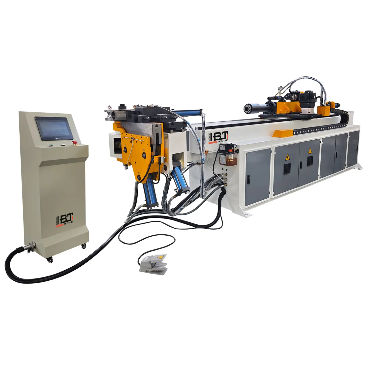 - Автоматический станок с ЧПУ (CNC). Процесс гибки (подача трубы, её поворот вокруг собственной оси и непосредственно гибка) производится автоматически гидро- или сервоприводами без участия оператора по выбранной программе с заранее настроенными параметрами.