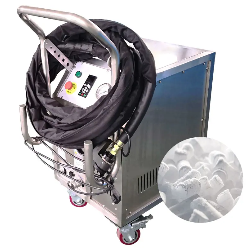 Оборудование для чистки сухим льдом применяется в сферах, где необходимо восстановить чистоту станков, металлоконструкций от ржавчины, минеральных отложений, органических загрязнений. Также применяется для очистки электронных компонентов: СО2 является диэлектриком, поэтому нет риска короткого замыкания цепи или других неисправностей.