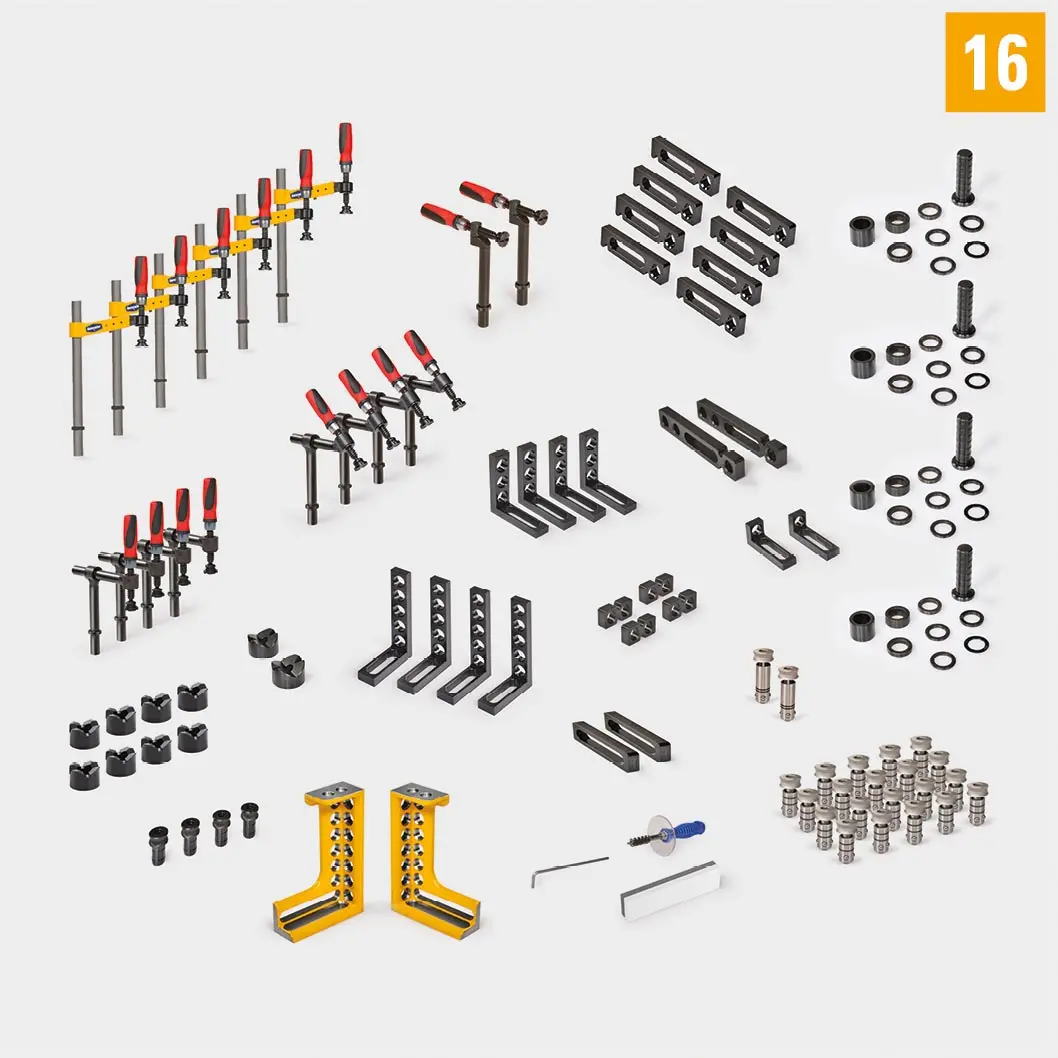 - Модульная конструкция и гибкость: Главная особенность 3D сварочных столов — это их модульность. Столы снабжены отверстиями и пазами, которые позволяют гибко изменять конфигурацию рабочего пространства, подстраивая его под нужды конкретной задачи. Вы можете легко комбинировать различные элементы и фиксировать заготовки под любыми углами, что значительно расширяет возможности сварки.
