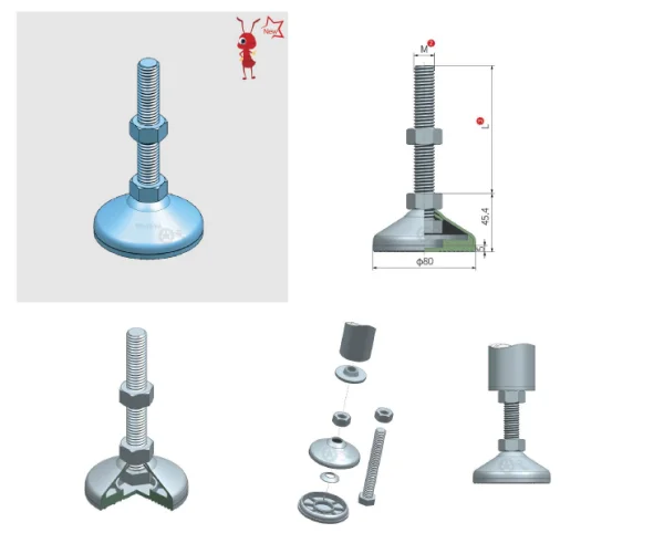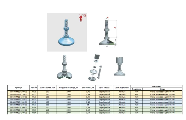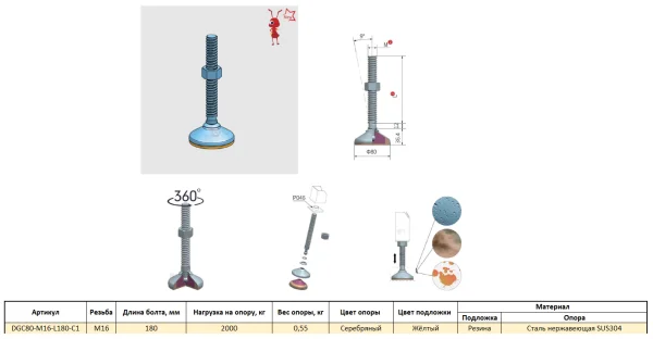 DGC80-M16-L180-C1 Универсальная регулируемая опора M16x180 Ø основания 80 мм. Сталь нержавеющая SUS3