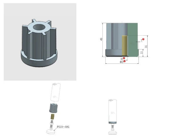 ZJ-YJT-D48-M20-T1,5-C2 Пластиковая вставка круг Ø 48 мм М20 Т = 1,5 мм. Резьбовая вставка сталь нике