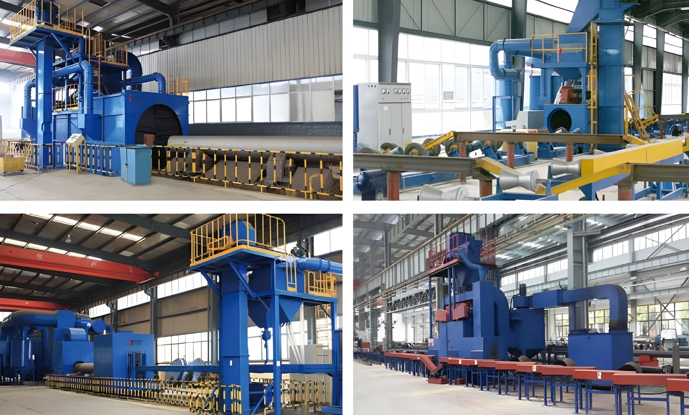 Конвейерная дробеметная установка S-T720 – это высокопроизводительное оборудование, предназначенное для быстрой и эффективной очистки поверхностей труб большого диаметра от загрязнений, ржавчины и окалины. Установка состоит из двух основных компонентов – дробеметной камеры, которая производит очистку деталей, и конвейера, который обеспечивает подачу деталей в зону очистки.