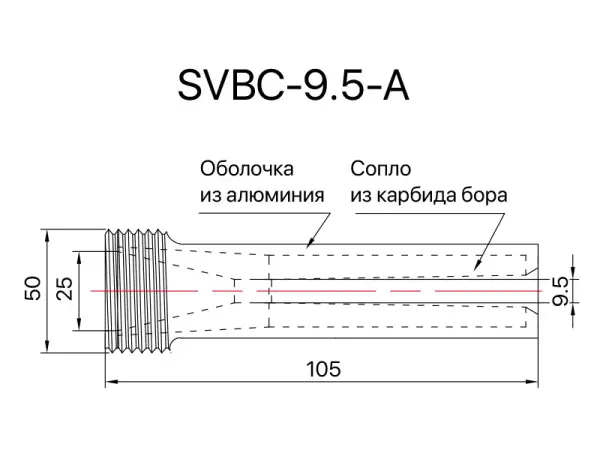 - Карбид бора. Это лучшее решение для работы с агрессивными абразивами, видами окисей алюминия, а также минеральными наполнителями. Срок эксплуатации изделий из такого материала, при использовании агрессивных абразивов в разы больше, чем у сопел из карбида вольфрама или других материалов.