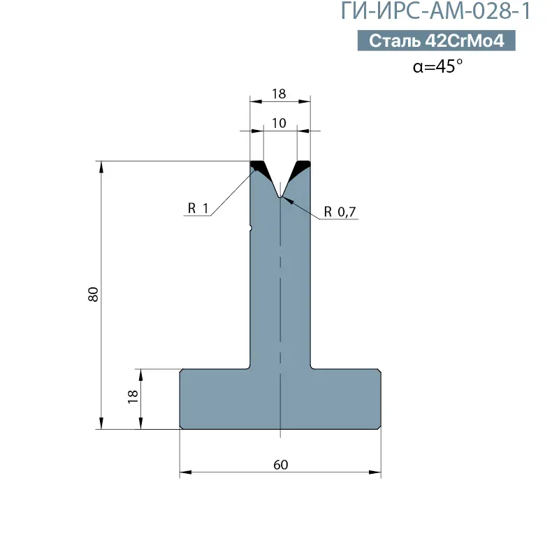 Мы рады представить вам матрицу ГИ-ИРС-АМ-028-T (Т-образная одноручьевая матрица) системы крепления EUROPEAN STYLE/AMADA/PROMECAM, которая является ключевым элементом листогибочного оборудования и предназначена для создания сложных профилей в металле.