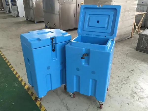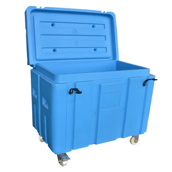 Контейнер для сухого льда оснащён колёсами, облегчающими его перевозку и перемещение, а также удобными ручками и фиксаторами для упрощения разгрузки. Такая мобильность делает термоконтейнер универсальным, удобным средством транспортировки и хранения содержимого.