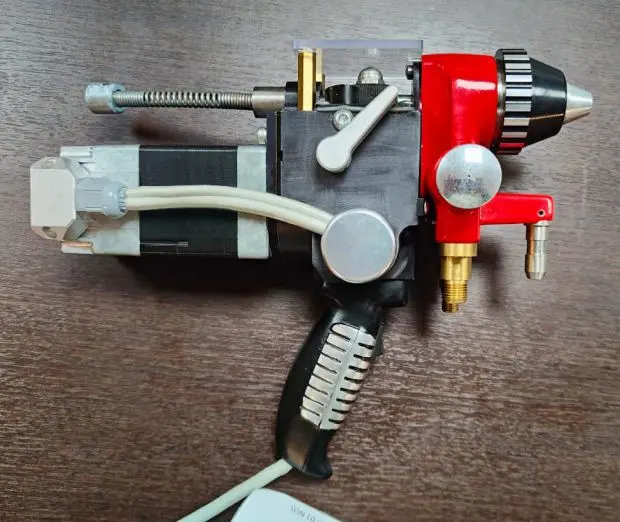Горелка для газопламенного напыления Sprayjet 88‑EL. Применение электропривода позволяет получить стабильные и точные значения скорости подачи проволоки.