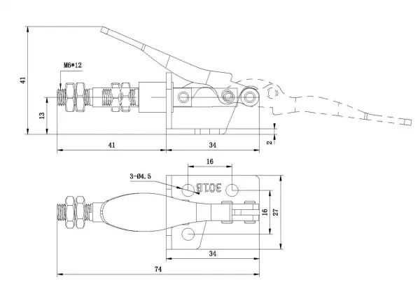 Угол раскрытия рукоятки, град.