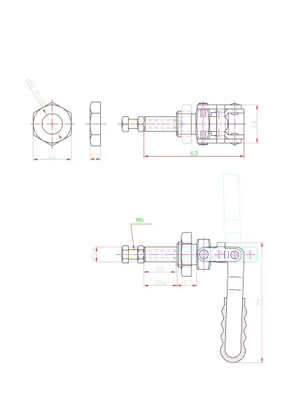 Угол раскрытия рукоятки, град.