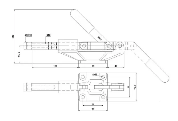Угол раскрытия рукоятки, град.