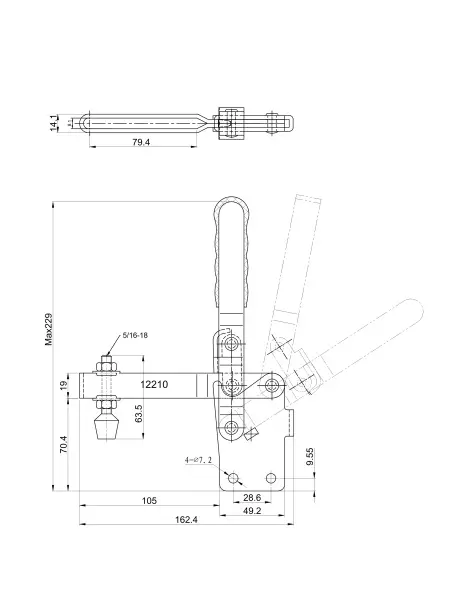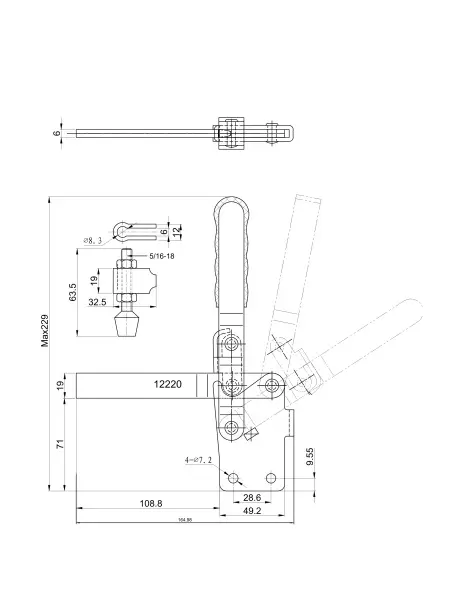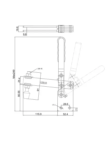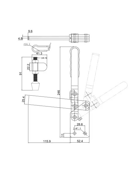 Угол раскрытия прижимной штанги, град.