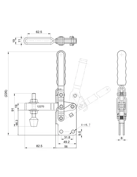 Угол раскрытия рукоятки, град.