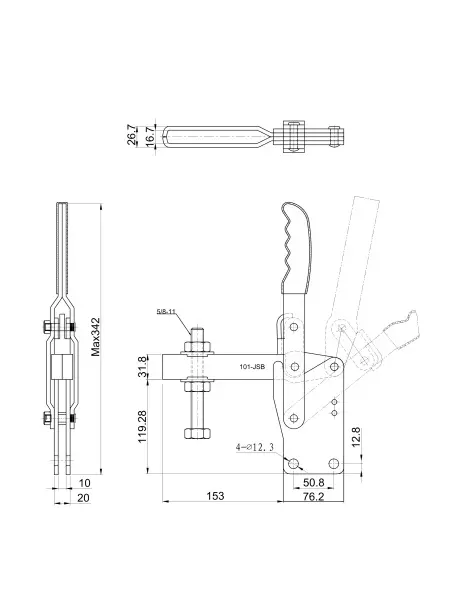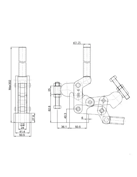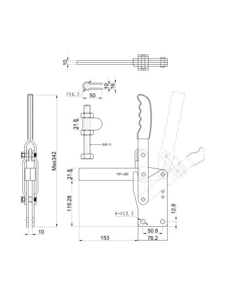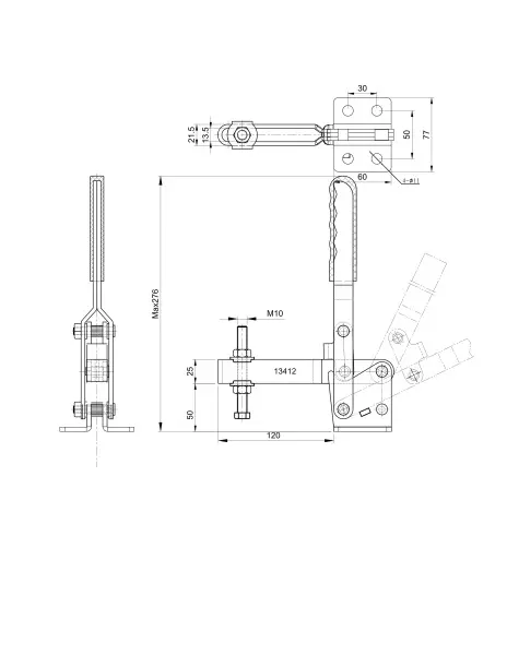 Угол раскрытия прижимной штанги, град.